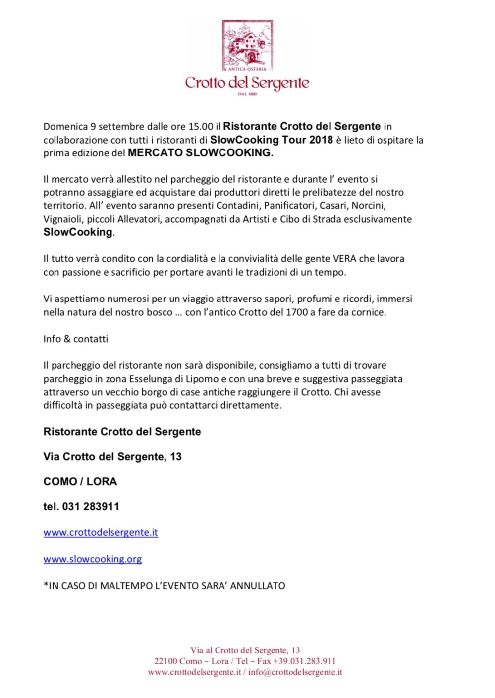 Domenica 9 Settembre saremo presenti al mercato di SLOWCOOKING a Lora: iniziativa privata alla scoperta del gusto e dei luoghi sconosciuti “a noi vicini”.