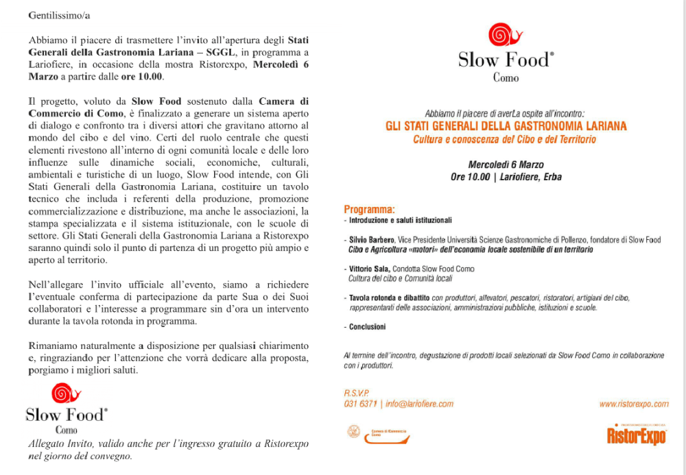 Evento Stati Generali della Gastronomia Lariana — SGGL Pubblicato da admin il 21 febbraio 2019 Condividi:Condivisione Fai clic per inviare un link a un amico via e-mail (Si apre in una nuova finestra) E-mail Fai clic qui per stampare (Si apre in una nuova finestra) Stampa Mi piace Caricamento...