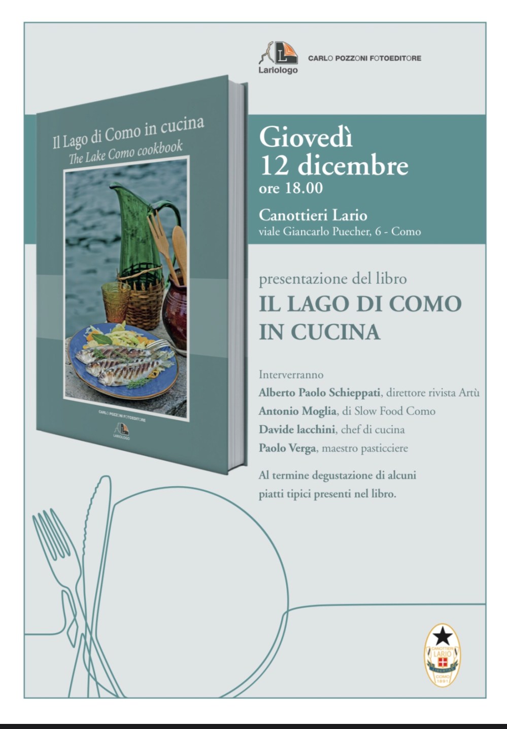 E’ il prossimo giovedì 12 dicembre alle ore 18.00 alla Canottieri Lario con successiva degustazione di alcune preparazioni del libro. Dettagli in locandina.