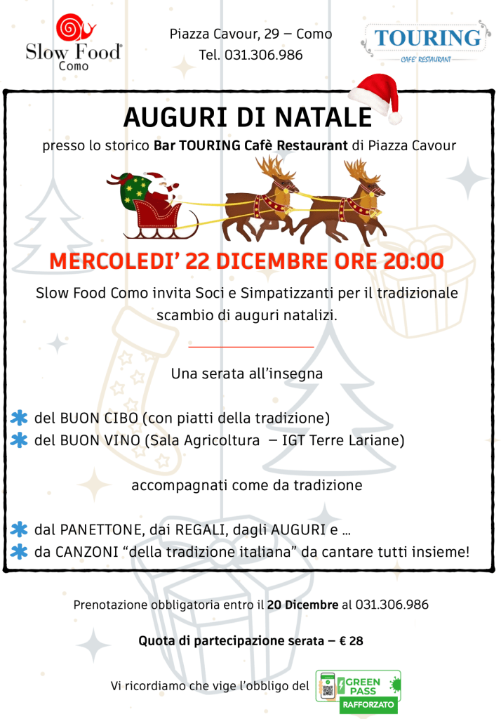 appuntamento con i nostri tradizionali auguri natalizi, mercoledì 22 dicembre alle ore 20.00 Bar Touring cafè di Piazza Cavour a Como.
