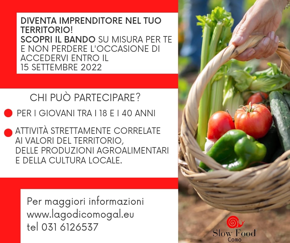 Amici produttori, ci riportiamo i riferimenti ad un bando emanato dal GAL Lago di Como, che si rivolge ai giovani tra i 18 e i 40 anni imprenditori con Partita Iva da non oltre due anni e residenti in alcuni comuni del Triangolo Lariano.