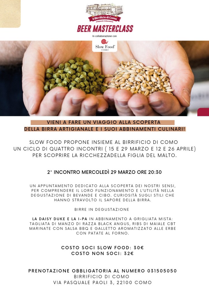Il corso organizzato da Slow Food Como in collaborazione con il Birrificio di Como è finalizzato alla scoperta della “ricchezza del malto” per distinguerne le tipologie, per conoscerne la storia produttiva, per affinare le tecniche di degustazione e per scovare i corretti abbinamenti con il cibo.