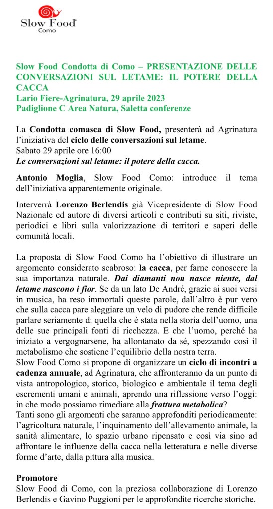 Veniteci a trovare presso lo stand perchè… senza troppo svelare… vi aspetteranno deliziose sorprese! Siamo anche presenti nel calendario degli eventi il 29 aprile alle ore 16.00 con l’inaugurazione del ciclo delle conversazioni sul letame e ogni giorno alle ore 11.00 per raccontare distintamente l’esperienza degli orti sociali, didattici e urbani.