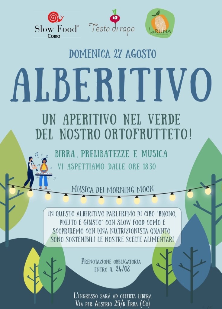 Domenica 27 agosto dalle 18,30 nell’orto-frutteto de La Runa in via Per Alserio 25/b Erba (CO) incontro con Anna Zottola di Slow Food Como su prodotti locali, filiera corta e cibo “buono, pulito e giusto” e con Eleonora Corti, nutrizionista, sulle scelte alimentari sostenibili per l’ambiente.