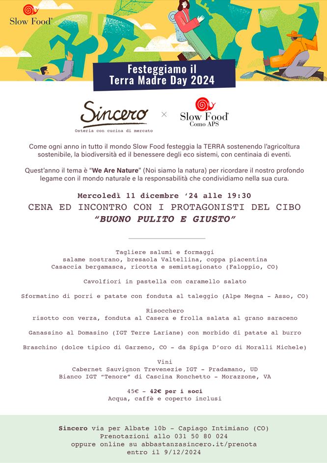Mercoledì 11 dicembre, presso l’“Osteria con cucina di mercato” SINCERO – Capiago Intimiano (CO), ulteriori dettagli e menù in locandina!