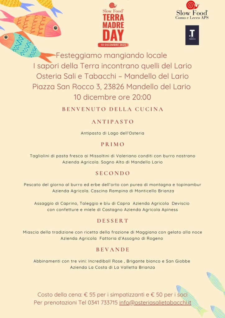 10 Dicembre Terra Madre Day – Slow Food Como e Lecco ha festeggiato presso l’Osteria Sali e Tabacchi di Mandello Lario. E’ una Osteria con la Chiocciola di Slow Food: un modello da seguire per la storia locale che racconta e per un menù con prodotti di prossimità.